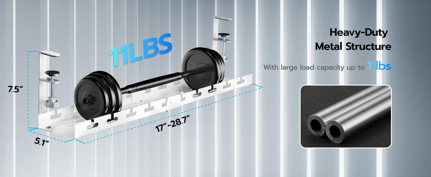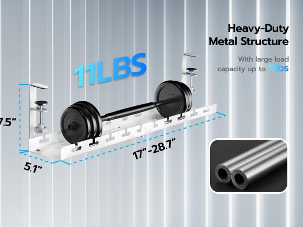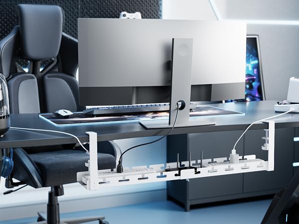 - 【Durable Metal Build for Long-Term Use】Crafted from robust, fully welded steel with a smooth powder-coated finish, this cord organizer for desk resists rust and minimizes dust buildup—even with long-term use under your desk. It supports up to 11 lbs of weight, making it a dependable solution for keeping cables, power strips, and adapters organized.