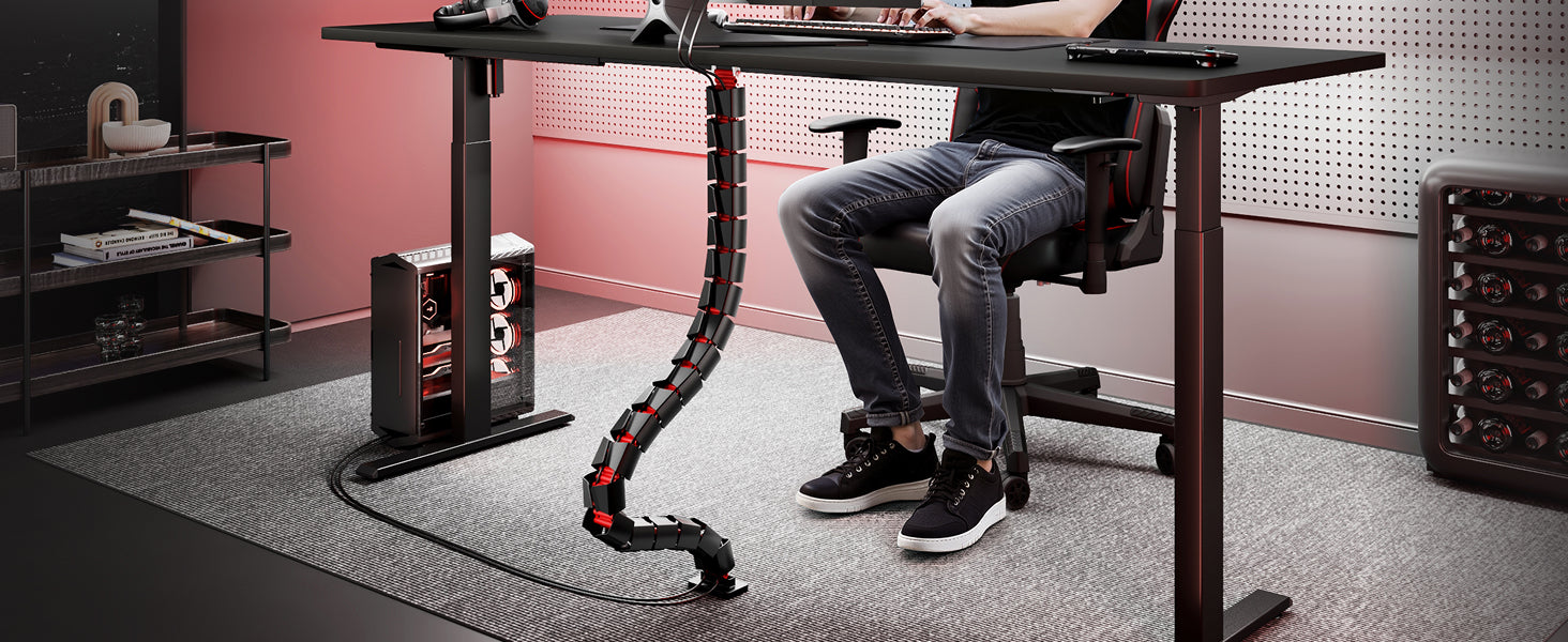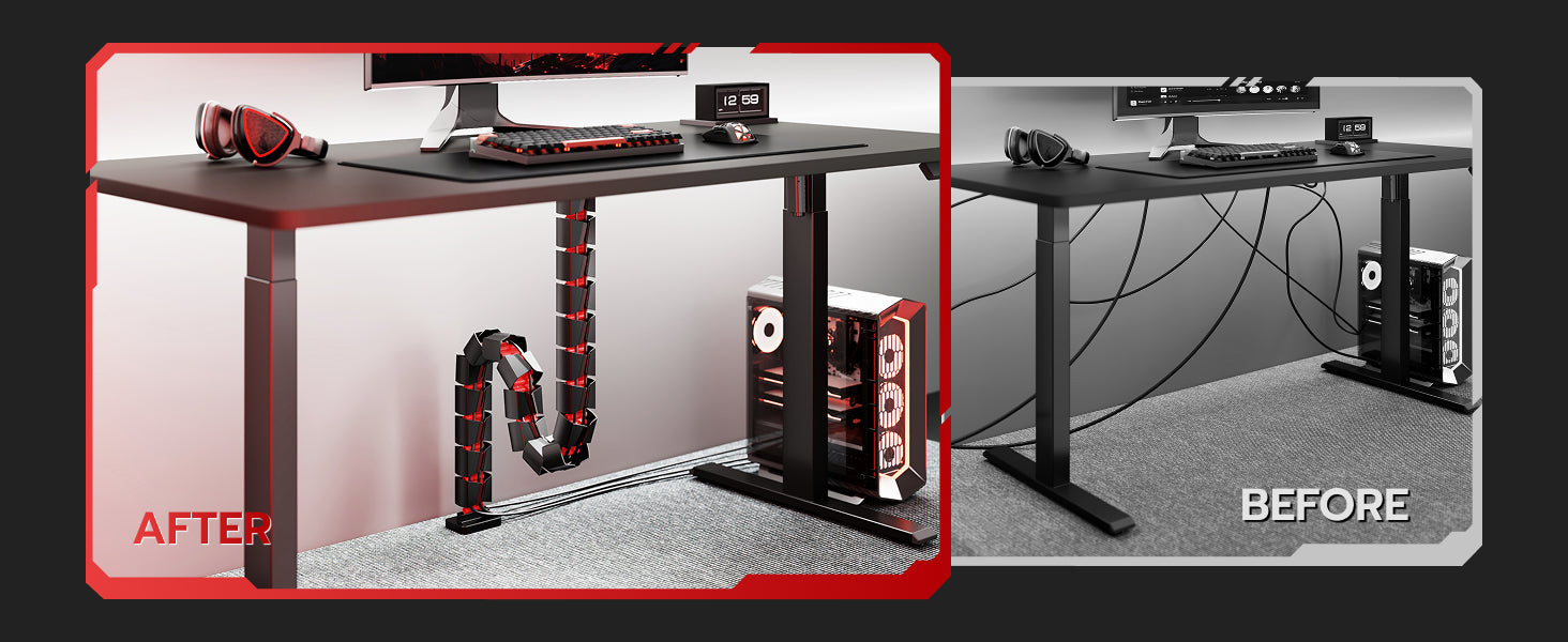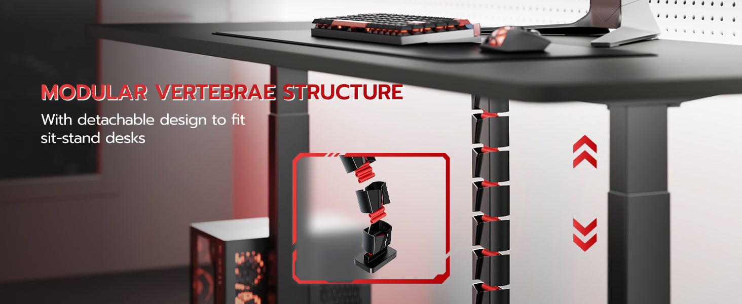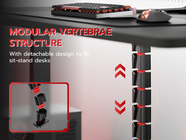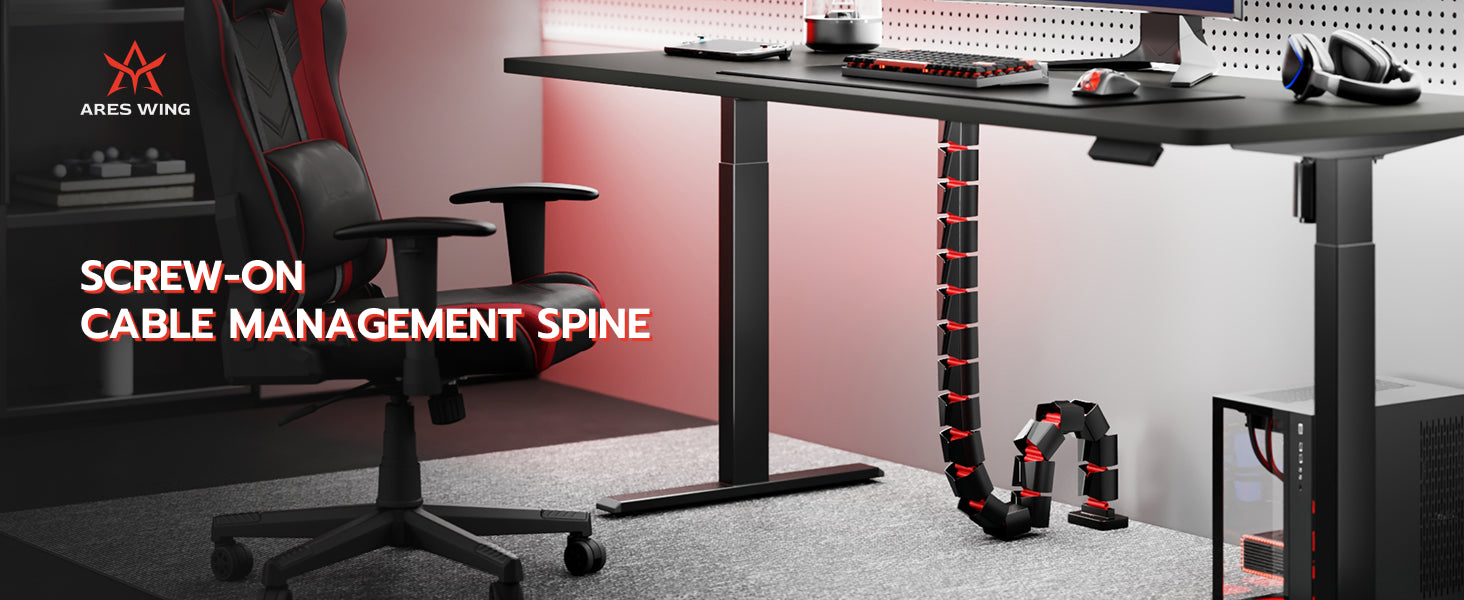 - 【Tame Your Cables in Style】Built for serious setups, ARES WING gaming-style cable spine runs seamlessly from desktop to floor, guiding all your wires through a central spine structure. Say goodbye to hanging cords or tangled messes—your cables stay hidden, protected, and perfectly routed, while the aggressive aesthetic matches your high-performance gaming rig.