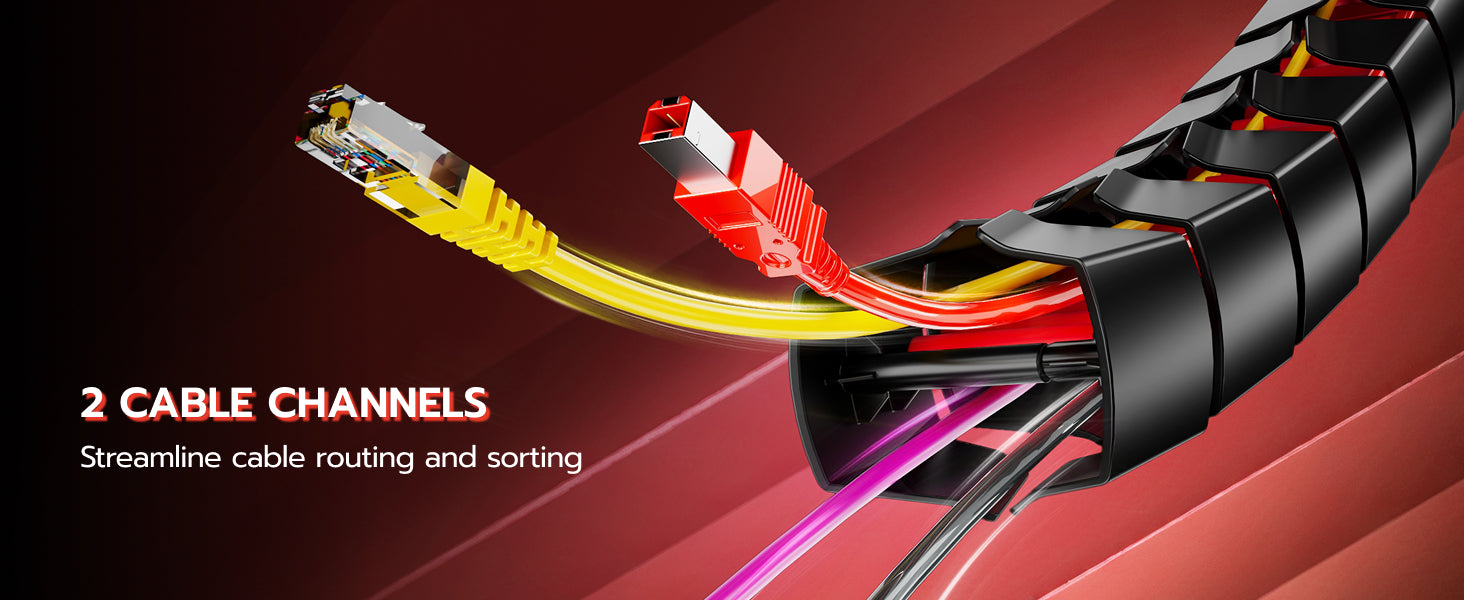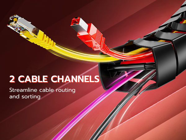- 【2 Large Cable Channels for Smarter Organization】Designed with two spacious cable pathways, this cable vertebrae lets you separate and organize power cords and data cables with ease—no more tangled mess under your desk. Whether you're managing a dual-monitor setup, a gaming rig, or a work-from-home station, the divided structure helps prevent interference and keeps your setup clean and efficient.
