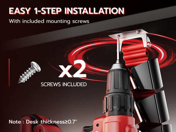 - 【Secure Screw-On Installation】Easily secure your cable snake with the included screws, ideal for permanent setups that demand maximum strength and stability. This method supports desks with a thickness ≥ 0.7 inches, making it perfect for heavy-duty workstations or gaming setups where you don’t want your cable management to budge.