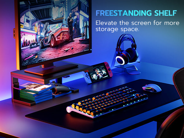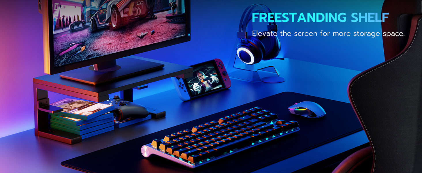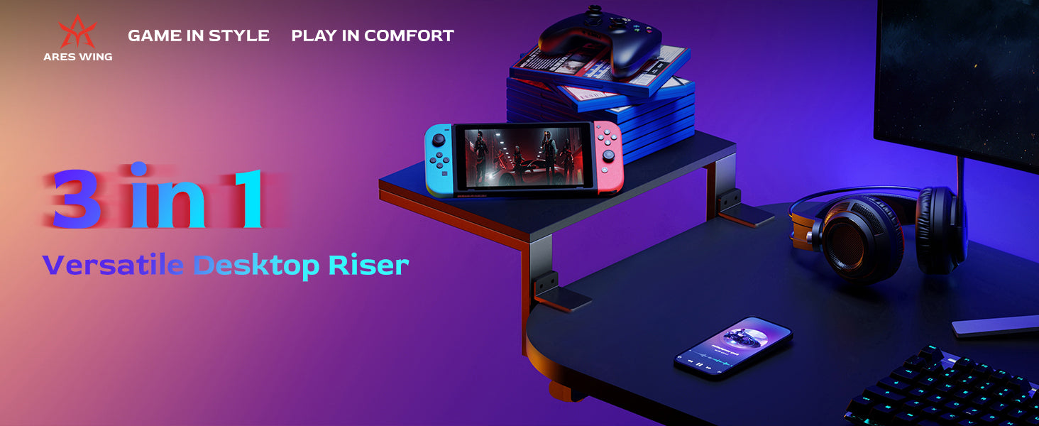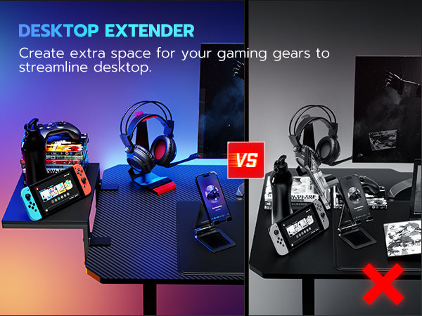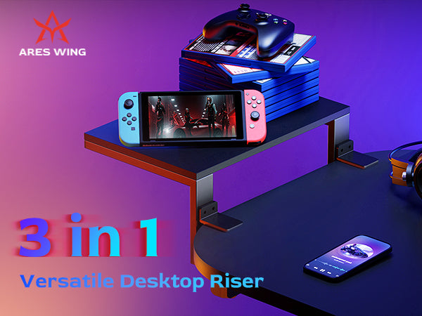 - Extend Your Desk Space:ARES WING multifunctional desk shelf can be mounted externally on the side of the table, help you to free up and gain additional desktop space. It holds up to 44 lbs, which perfectly solves the problem of nowhere to place games, office equipment or decorative items, make your desktop look unique and neat
