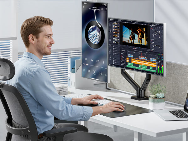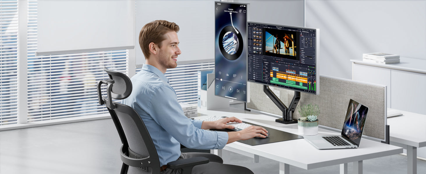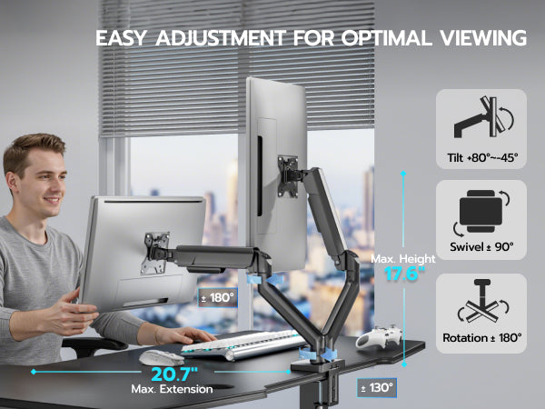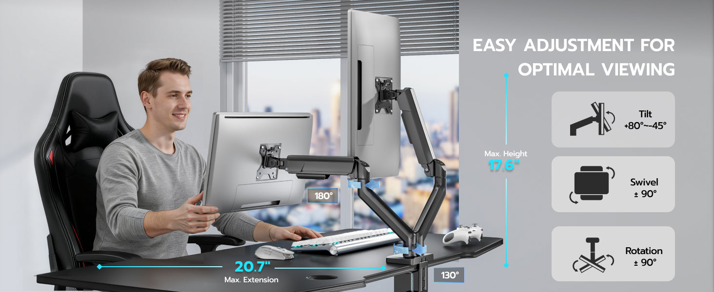 - 【Ergonomic Viewing Angles】Customize your setup with 17.63" height adjustment, 18.4" extension range, ±180° swivel, 360° rotation, and +90°/-90° tilt. Achieve eye-level alignment effortlessly.