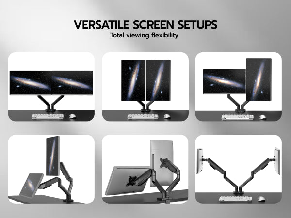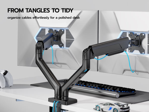 - 【Integrated Cable Management】Maximize your desk space with a dual-monitor mount featuring built-in cable management that hides wires, creating a clutter-free gaming setup.