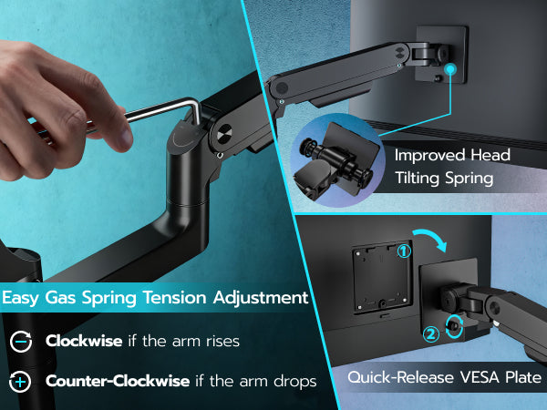 - 【Durable & Built to Last】Crafted from premium-grade steel and aluminum, our computer monitor wall mount delivers rock-solid stability and long-term reliability. Each internal gas spring mechanism has passed over 20,000 fatigue tests to guarantee smooth, consistent motion even after years of use. Engineered for durability and performance, this mount ensures your monitors stay securely supported day after day.