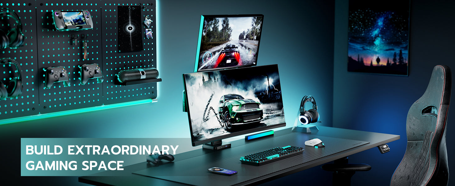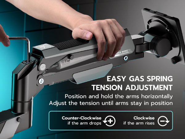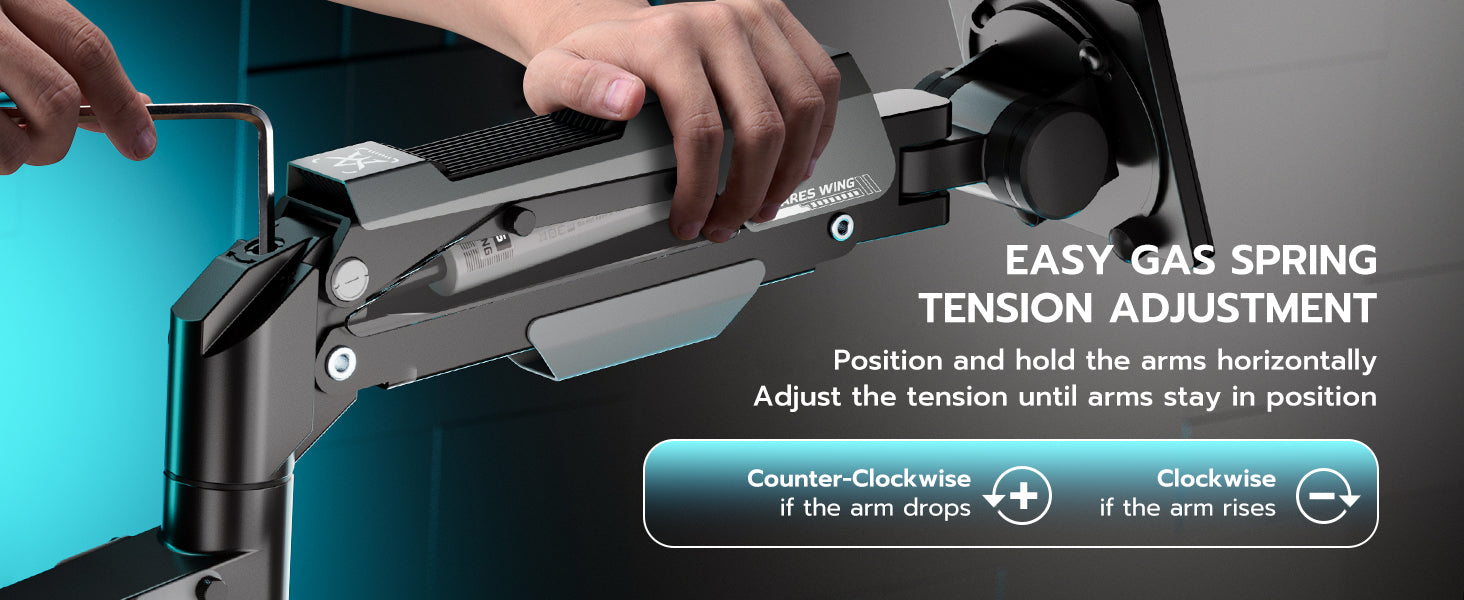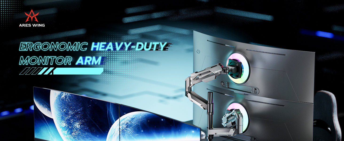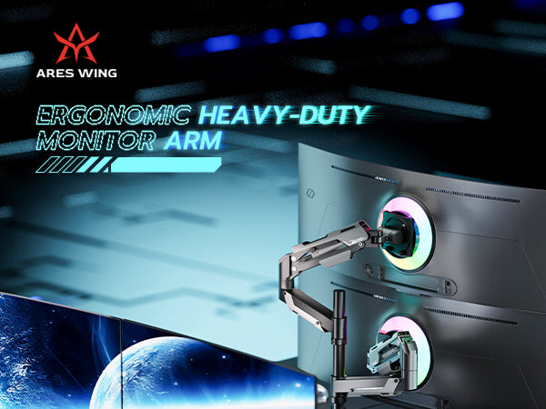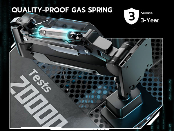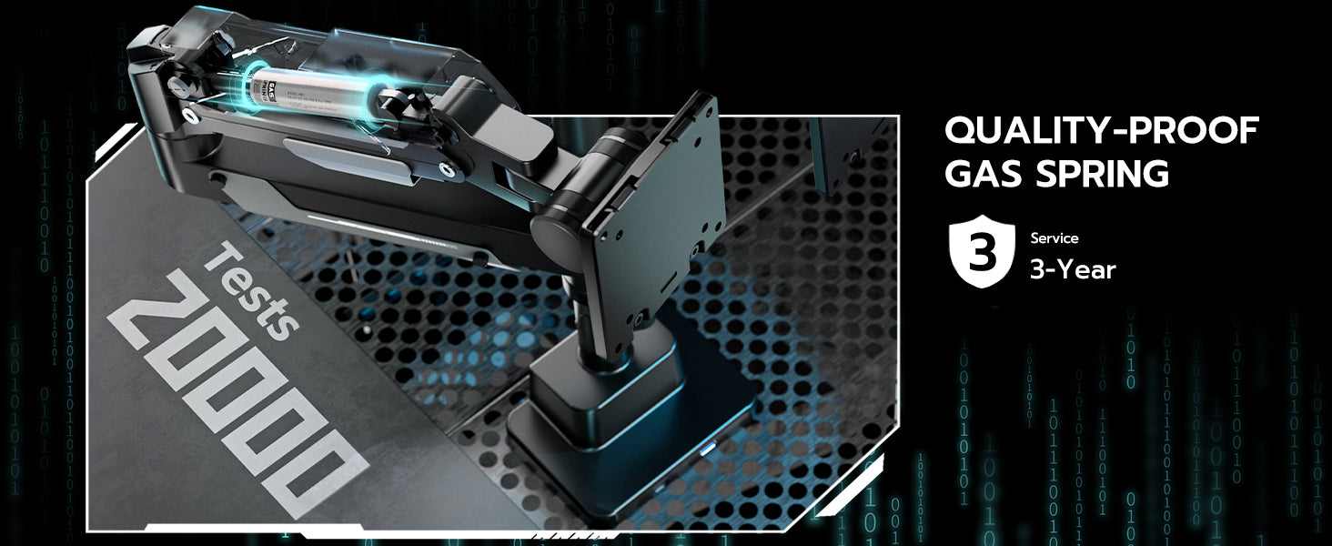 - 【Durable and Sturdy】This dual monitor stand offers superior build quality, featuring premium-grade steel and aluminum. Designed with a robust construction, this monitor mount does not wobble or sway. The built-in gas spring has undergone over 20,000 fatigue tests to ensure its durability and resilience for large and expensive monitors