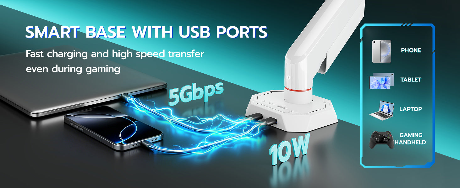 - USB 3.0 Port - The base of this gaming monitor stand is armed with dual USB 3.0 ports, always ready to deliver a powerful combo of high-speed charging and data transfer.