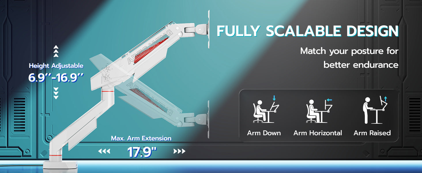 - Durable and Reliable - The monitor mount is made of high-quality aluminum, and the internal mechanical spring has undergone over 20,000 fatigue tests to ensure the product's stability and durability.