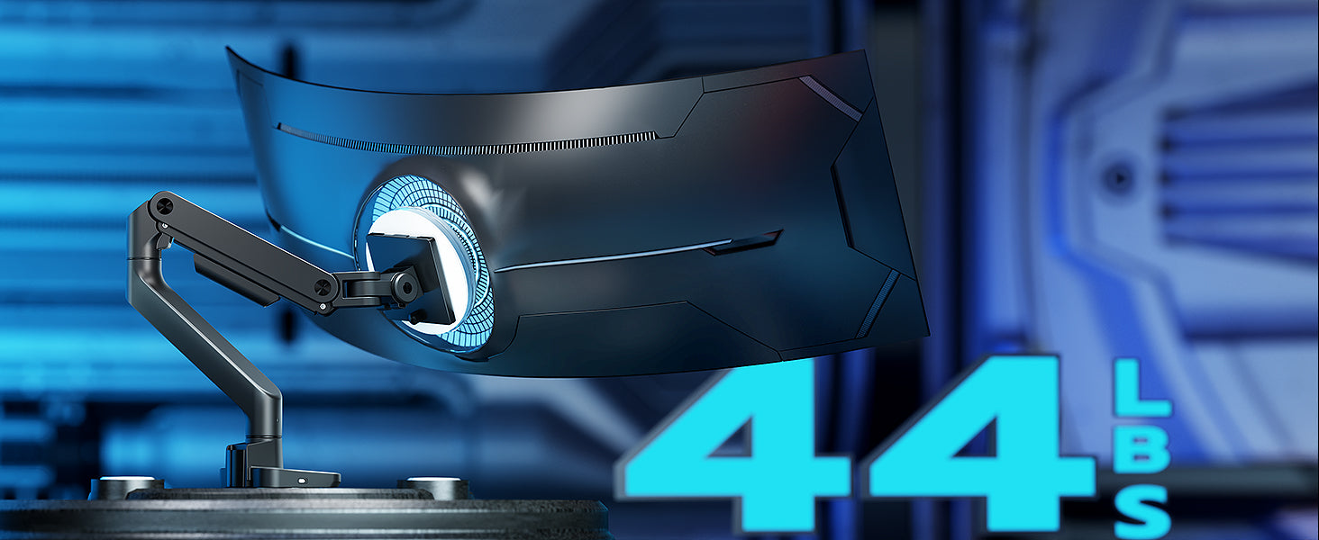 - 【Support up to 49" & 44lbs Monitors】The ARES WING single monitor arm has an optimized tilt structure, provides excellent weight-bearing capacity for ultra wide screens, including most of the popular 49" ultrawide flat and curved computer monitors. With a max. weight capacity of 44 lbs, it can securely support 17"-49" monitor, and compatible with VESA 100x100 and 75x75mm. If your monitor does not have a VESA hole, you need to prepare a VESA mount adapter.