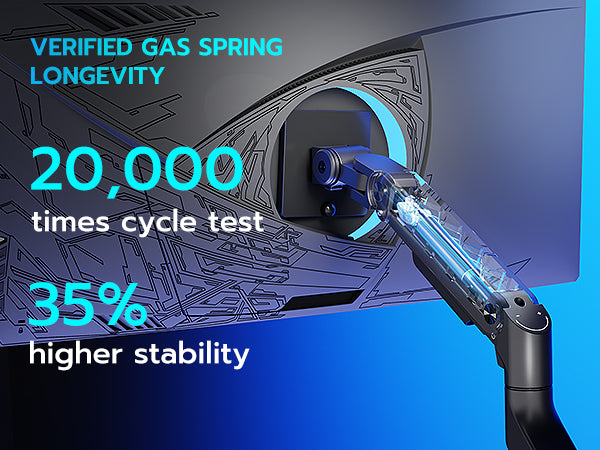 - 【Built to Last】It's a practical computer monitor arm made of high-quality steel and aluminum. The internal gas spring has undergone over 20,000 fatigue tests to ensure the arm is strong and durable. This means you can use it with confidence, without worrying about any problems.