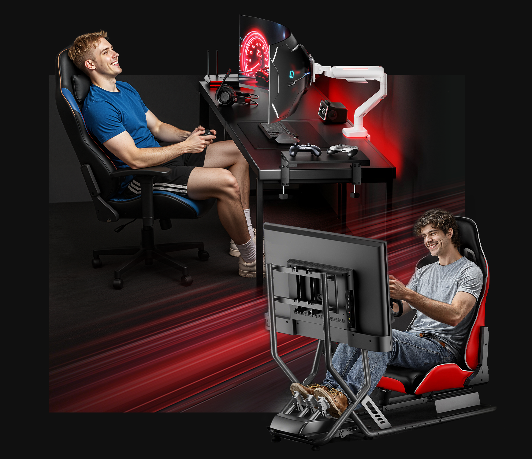 From monitor arms, racing sim cockpits to other accessories — everything's designed by gamers, for gamers. Because your setup should feel as good as it looks.